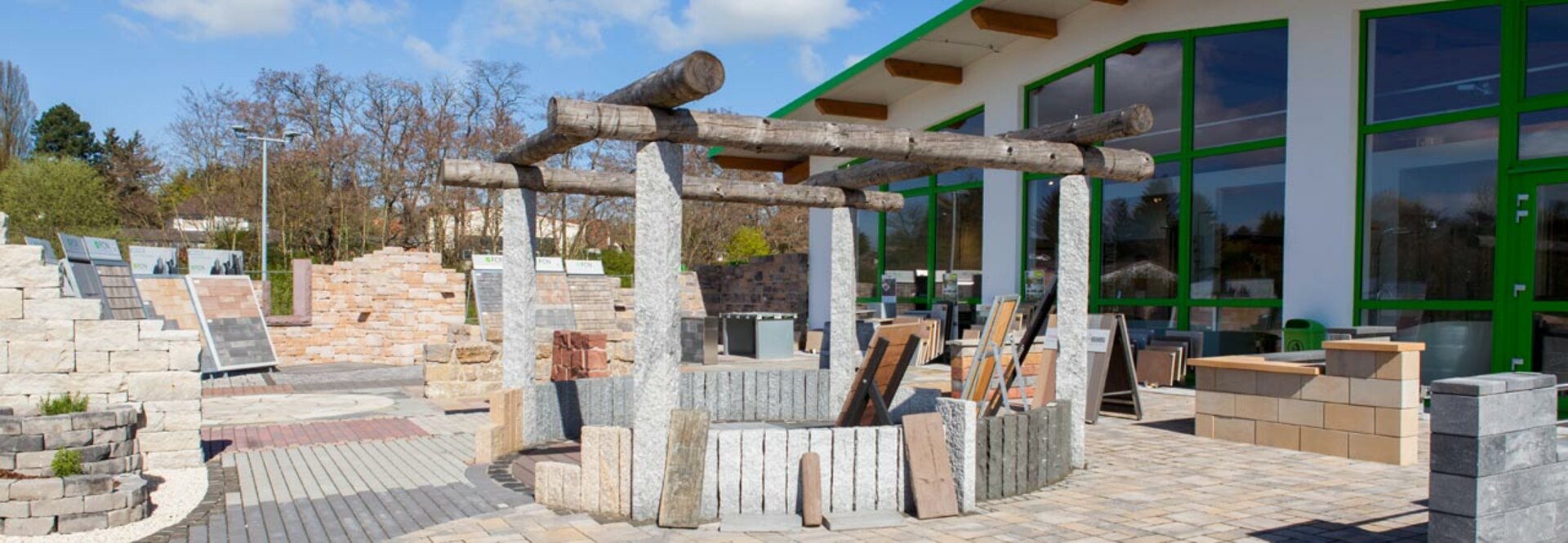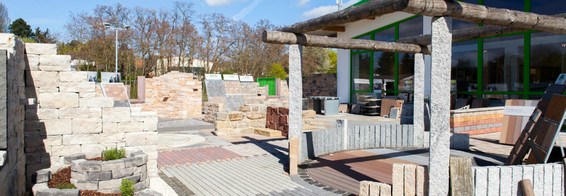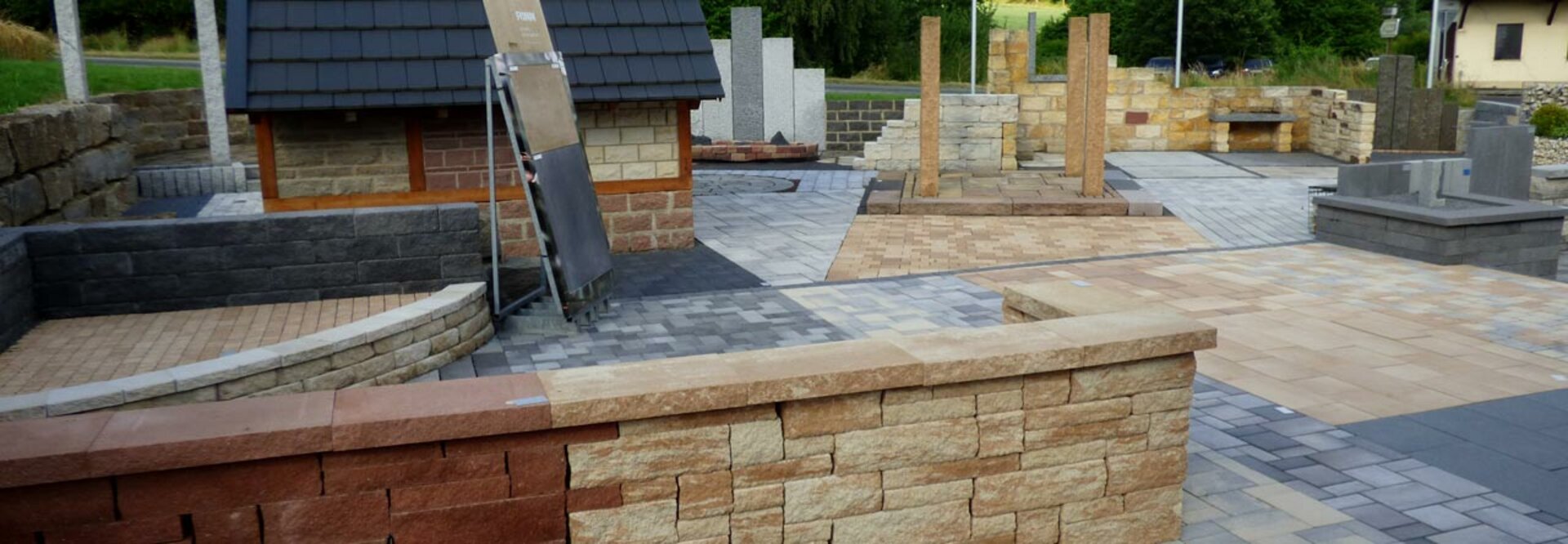 Naturstein, Pflaster, Randsteine, Mauerwinkel, Trockenmauer, L-Steine und Betonplatten der Firmen Rinn, Ehl, Kimm, Obolith, Kann, Arnheiter und Sehring lieferbar.